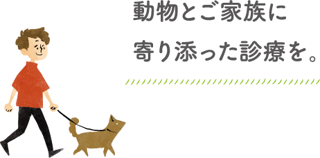 くるり動物病院では、動物と飼い主であるご家族に寄り添った診療をいたします。